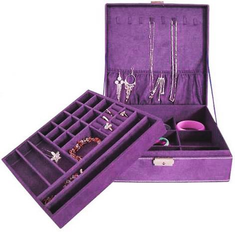 Product Name : Aspire Lint Jewelry Box / Jewelry Organizer, Two-layer, 10" x 10" x 3" - Purple, Mother's Day Gift