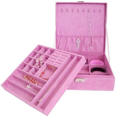 Product Name : Aspire Lint Jewelry Box / Jewelry Organizer, Two-layer, 10" x 10" x 3" - Pink, Mother's Day Gift